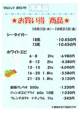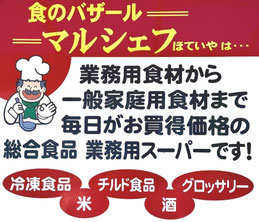 冷凍食品(魚介類・野菜・肉)・生鮮魚介類・チルド商品・デリカ商品・乾物・米穀類・酒類・調味料・業務資材・洗剤等