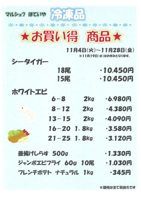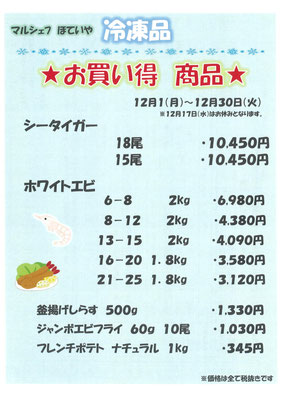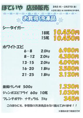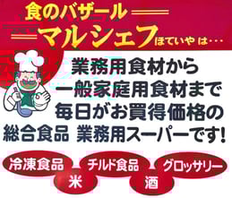 冷凍食品(魚介類・野菜・肉)・生鮮魚介類・チルド商品・デリカ商品・乾物・米穀類・酒類・調味料・業務資材・洗剤等