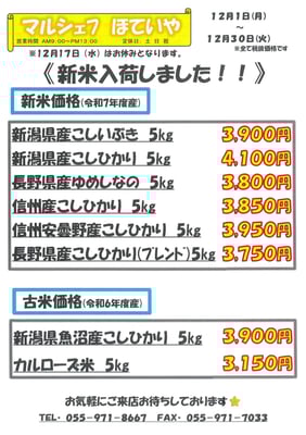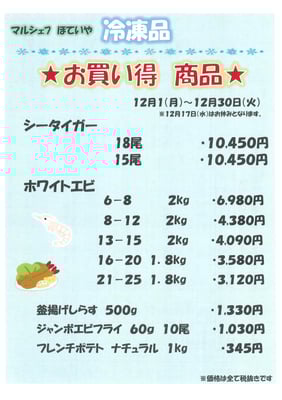 2025年12月の店頭販売お買い得品情報です。みなさまお気軽にお越しください。
